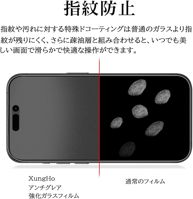 【アンチグレア】XungHo独自の反射防止コーティングの加工で、ディスプレイの表面に太陽光や蛍光灯などの反射を抑えます。視認性を向上させて画面が見えやすくなり、目の負担を軽減できます。更にサラサラ手触りで指紋の跡が残りにくく、指のすべりが滑らかでゲームをするのに適しています。