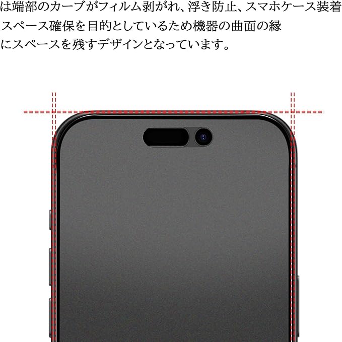 【対応機種】iPhone 17 Pro ▏携帯は端部のカーブがフィルム剥がれ、浮きの防止、スマホケース装着スペース確保のため、機器の曲面の縁にスペースを残すデザインとなっています。