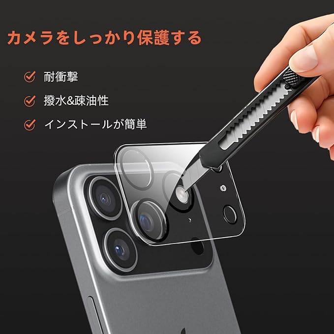 【カメラをしっかり保護する!】カメラフィルムの表面硬度が9Hなのため、強化ガラス素材です。耐衝撃性と飛散防止加工が施され、傷や擦れに強いです、鍵や尖ったものでも傷つけず、カメラをしっかり保護します。