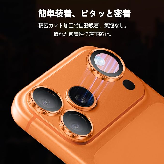[HinZann]iPhone 17 Pro Max/17 Pro 専用 カメラ保護カバー、アルミニウム合金 + 9H硬度強化ガラス レンズカバー、全面保護 衝撃防止 キズ防止 汚れ防止 HDクリア 超高透過率 高精度カット 貼り付け簡単 カメラ保護フィルム アイフォン 17 Pro/17 Pro Max対応 - オレンジ色