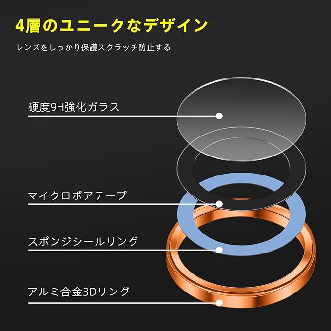 【高品質素材】航空用アルミニウムメタルリング + 9H強化ガラスシングルカメラプロテクターは カメラレンズを損傷や傷から保護します。 ナイフや鍵などの尖ったものでも簡単には傷がつきません。落下、汚れなど日常の使用に耐えることができます。