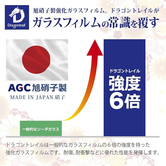 「スマートフォンのガラスフィルムの常識を覆す」日本製旭硝子Dragontrail「ドラゴントレイル」採用(made in Japan硝子)※本商品は全面吸着型で、フィルム全体が画面に接着するタイプです。