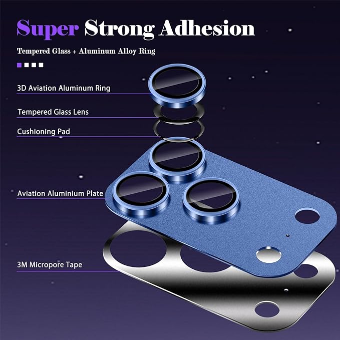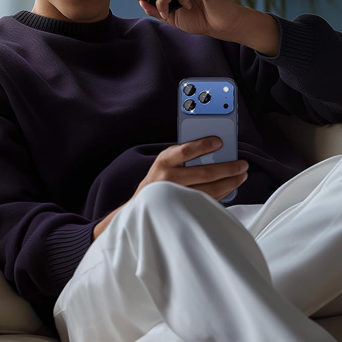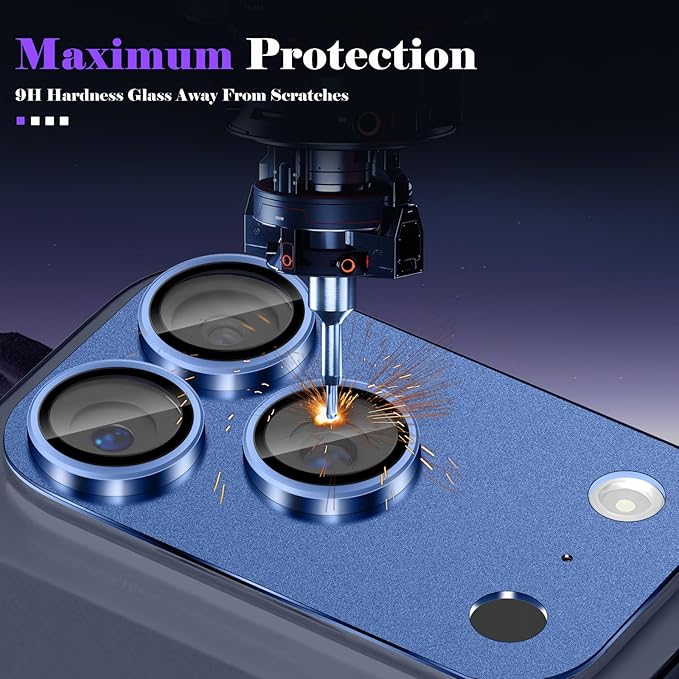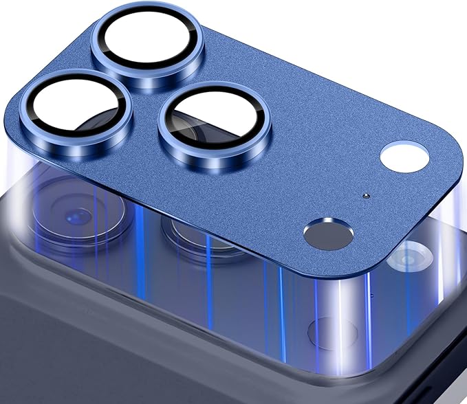 カメラカバー コンパチブル iPhone 17 Pro カメラフィルム アルミ合金一体製 カメラ保護 9H強化ガラス 全面保護 耐衝撃 高透過率 黒縁取り 露出オーバー防止【1枚】貼り付け簡単 カメラフィルム アイフォン17 Pro 対応 - インクブルー
