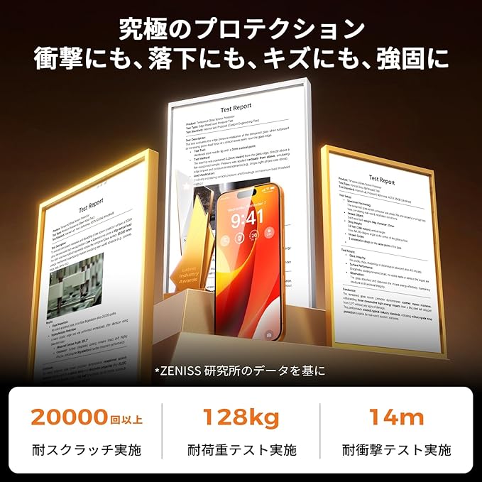 【業界トップクラスの保護性能!AGC 高硬度10H強化ガラス】Zeniss研究チーム30年の研究開発と継承された革新技術により生み出された弊社のいphone17 pro 保護フィルムは、米軍規格の航空宇宙グレードの高アルミシリコンガラス素材を使用し、最新のNa+/K+イオン交換技術により、ガラス内部に圧縮緩衝層を形成しています1200℃で10時間の高温硬化を繰り返し強化、10H硬度レベルを実現硬度と耐衝撃性が市販のあいほん17 proガラスフィルムより20倍も高いです。耐衝撃性(233cm耐落下)は市販iphone 17pro フィルム(50cm耐落下)の4倍。衝撃や傷からスマホを最大限に守ります鍵やコインなどの鋭利な物と一緒にバッグに入れても傷がつきませんさらに、いphone17 プロ 保護フィルムは破片飛散防止加工が施されており、使用者の安全を確保。全世界で1億600万枚以上を販売し、スマホ画面の破損ゼロという驚異的な実績を誇ります。