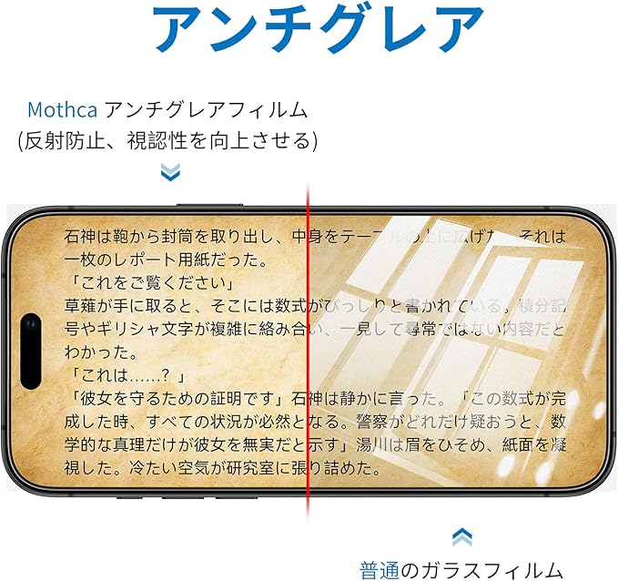 【サラサラ手触り】Mothca独自のナノエッチング技術で、ガラス表面に微細な凹凸構造を形成しております。指との接触面積が減少し、一般的な光沢フィルムとは異なる、サラサラとしたなめらかな操作感を実現しました。ゲームをプレイする時も指がスムーズに動き、いつでも快適でストレスのない操作を体験していただけます。