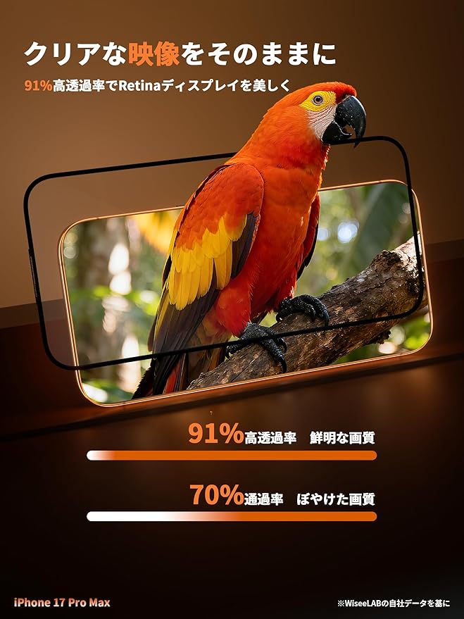 【特殊電気メッキコーティングで指紋防止&常にサラサラ】指紋や皮脂の付着を大幅に軽減し、付着した汚れもサッと拭くだけで消え、画面を常に清潔に保ちます。91%以上の高透過率により、iPhoneが本来持つ鮮やかな発色とタッチ感覚を損ないません。ゲームやタイピングの反応速度もそのままに、1年後も新品同様のサラサラ感を持続します。