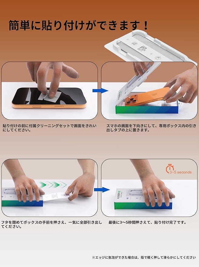 【6ヶ月間保証付き!安心のサポート】ご購入いただいたお客様には、6ヶ月間の長期保証をご提供いたします。万が一、通常使用中に破損や浮き、気泡が発生した場合でも、迅速な保証対応を受け付けております。貼り付けに関するお困りごとも、日本語にて丁寧にサポート。大切な買い物を、最後まで安心してお楽しみいただけます。
