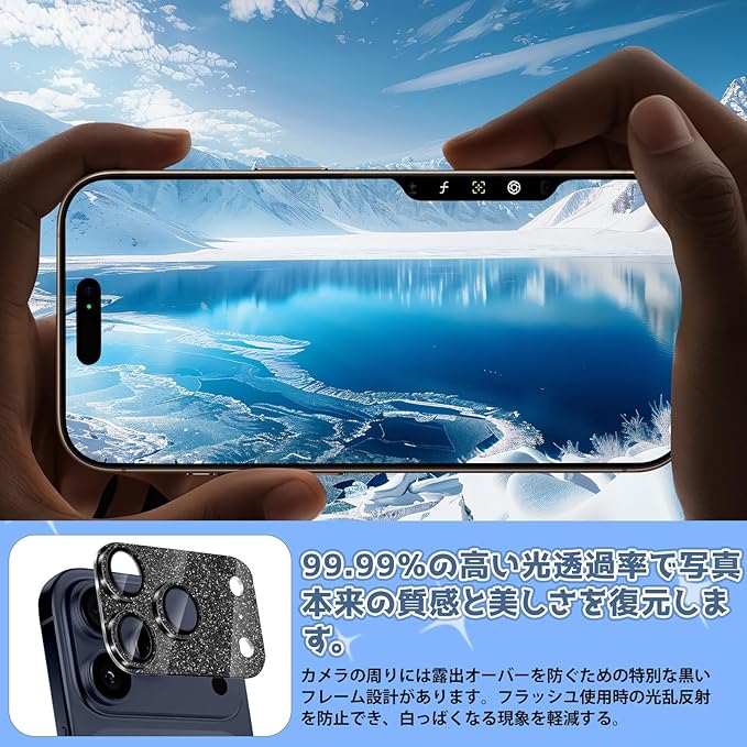 [カメラをしっかり保護] カメラフィルムの底部はアルミニウム合金、レンズ部分は硬度9Hの強化ガラスを採用し、レンズを傷や指紋から守ります。カメラのデザインよりも0.3mm高く、スクラッチ防止、カメラレンズを衝撃や通常の損傷から保護します。スマートフォンを落とした場合でも、保護フィルムが側面からの衝撃を吸収します。高価なレンズを鍵などの鋭利なものによる傷から徹底的に守ります。万が一スマホが落ちてしまっても、カメラフィルムが側面からの衝撃を吸収し、カメラを全方位から守ります。