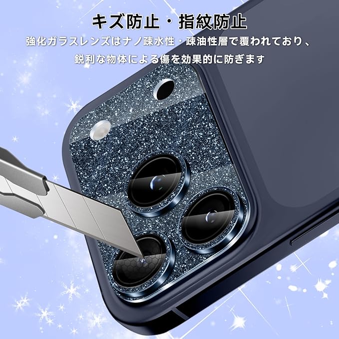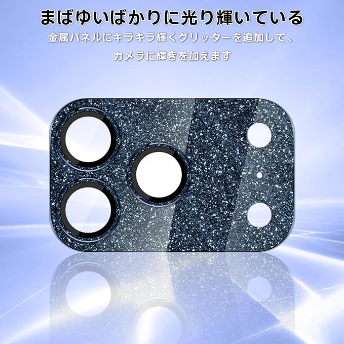 カメラフィルム iPhone 17 Pro(2025) 対応 カメラ保護 強化ガラス+アルミ合金 カメラカバー キラキラ レンズカバー キズ防止 耐衝撃 高透過率 貼り付け簡単 レンズ保護 アイフォン17プロ(2025) 用 (ブルー)