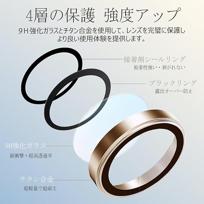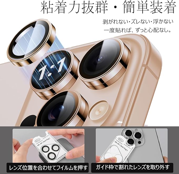 iPhone 17Pro/17 Pro Max/16 Pro/16 Pro Max 用 カメラ保護 レンズカバー 耐衝撃 ARコーティング 高透過率キズ防止 チタン合金 9H いphone17pro 16pro カメラ保護 レンズフィルム 黒縁取り 露出オーバー防止 粘着性強い 貼りやすい 17プロ・16プロ ・17プロマックス用 レンズフィルム (ゴールド)