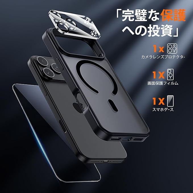 【3点セットのお得感】同価格帯では珍しい、iphone17 pro ケース+9H強化ガラスフィルム+カメラ保護リングの3点セット。追加購入の必要がなく、コスパ抜群。