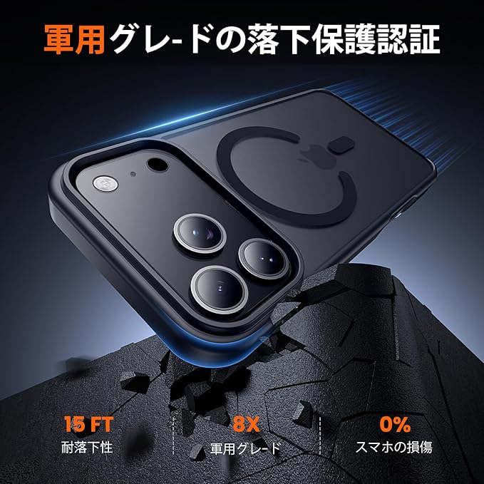【10FT軍事規格の耐衝撃保護】MILグレード落下試験済みで、4層構造とアクリルバックによりすべての角にわたって衝撃を吸収し、iphone17 proケースは24時間の包括的な保護を提供します。