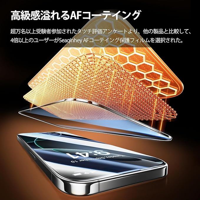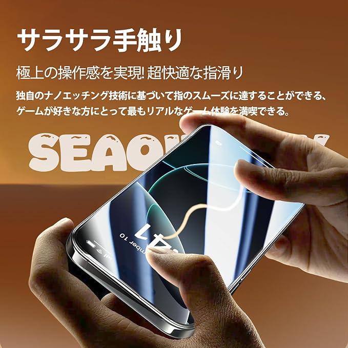 【指紋防止・撥水撥油】ガラスフィルムの表に指紋や汚れなどに対して特殊なコーディング済み、指紋が残りにくいです。なお、疎油層と組み合わせ、高感度を保つことができて触り心地がよく使いやすいです