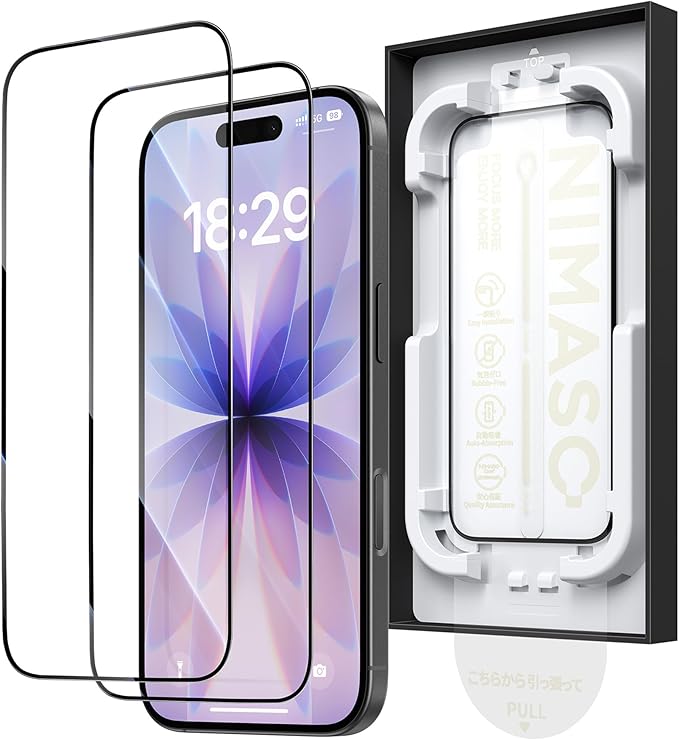 「対応機種」iPhone17 専用ガラスフィルム(6.3インチ)(ご注意:iPhone 17 Proには対応しておりません) ***スマホディスプレイの個体差により、本製品を貼り付けた際に軽微な浮きが発生する可能性があります。 ご不安がある方は、弊社製品の「NIMASO スライドローラー式 強化ガラス 3D曲面エッジ加工」を推奨しております。 「NIMASO スライドローラー式 強化ガラス 3D曲面エッジ加工」の特徴は、専用のスライドローラー式ガイド枠及び3D曲面エッジ加工により、曲率の大きいディスプレイでも、画面端の浮きや気泡などを、最小限に抑えることができます。