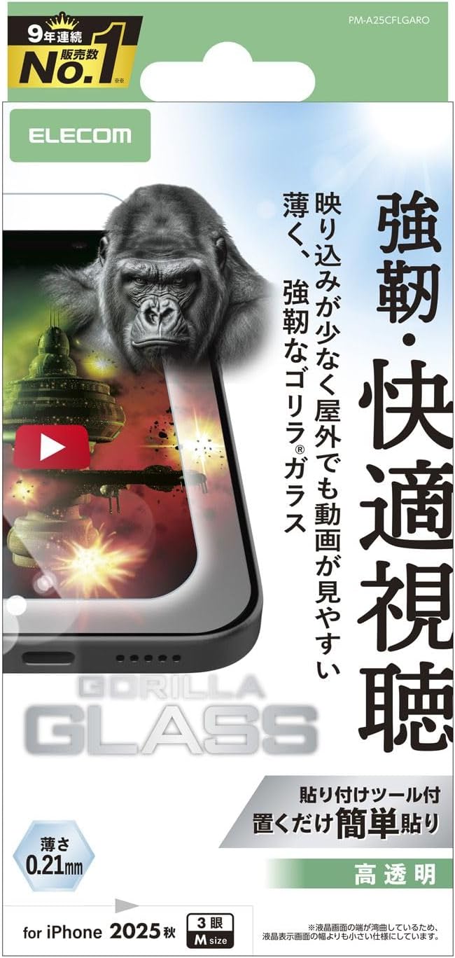 エレコム iPhone 17 Pro ガラスフィルム 光沢 gorillaガラス 硬度10H 動画が映える AR加工 衝撃吸収 指紋がつかない 気泡が入らない 【貼り付けツール付き】 PM-A25CFLGARO