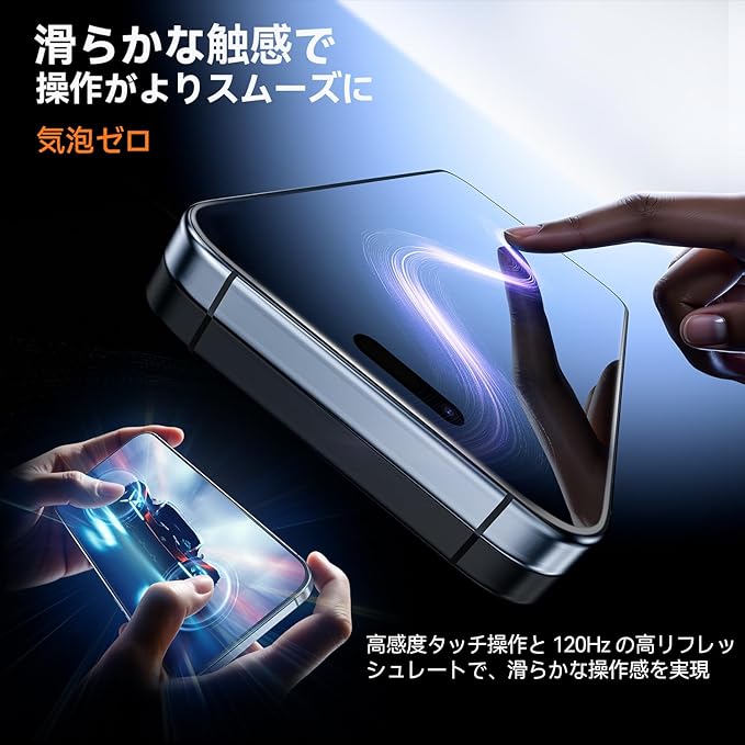 【指紋防止&なめらかな高感度タッチ】優れた撥水撥油性と指紋防止機能を備えたナノコーティング層を採用。ゲームやタイピング時の操作感を妨げず、防汚性能は最高レベル。この いphone17 pro max ガラスフィルムは、常にクリアな画面と滑らかなタッチ感覚を保証します。