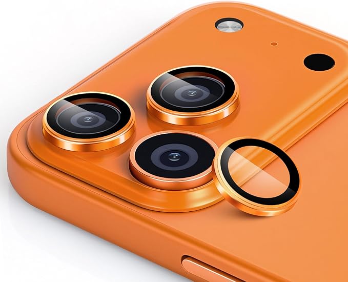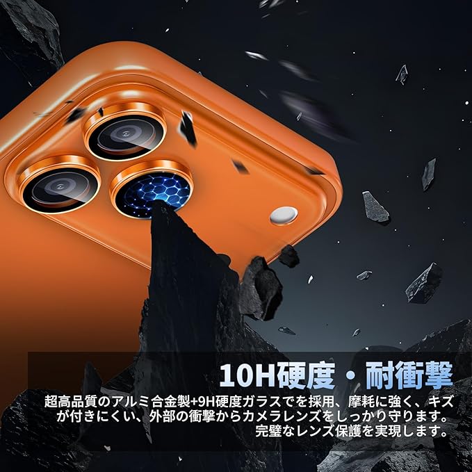 対応 iPhone 17 Pro / 17 Pro Max カメラ保護 カメラ保護カバー アルミ合金+強化ガラス製 カメラフィルム 曇り防止 高透過率 黒縁取り 露出オーバー防止 指紋防止 自動吸着 気泡ゼロ 対応 いphone 17 Pro / 17 Pro Max レンズカバー 【2枚セット】(コズミックオレンジ)