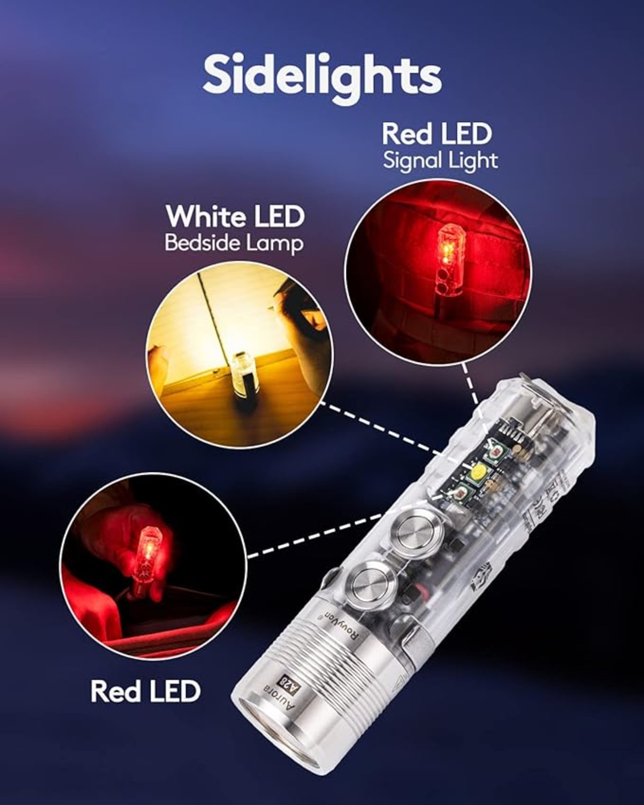 A28 G2 1000ルーメンの超高輝度EDC懐中電灯、USB C充電式850mAhバッテリーポケットキーホルダー懐中電灯、赤/白のサイドライト付き、屋外毎日の持ち運び、キャンプ用