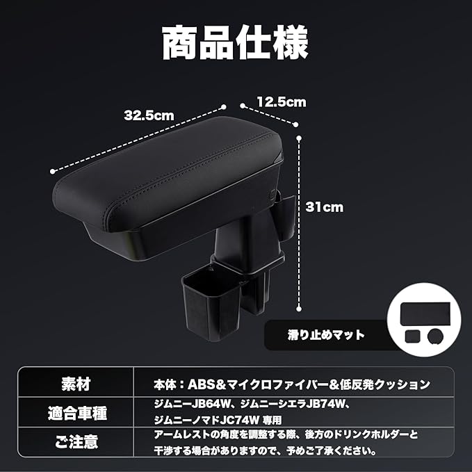 Auto Spec スズキ ジムニー シエラノマドJB64 JC74 専用 アームレスト JB74 収納ボックス 5ドア アームレストボックス 角度調整機能付き 肘置き スライド式 ドリンクホルダー コンソールトレイ 肘掛け ジムニー カスタム 内蔵パーツ 取り付け簡単 専用設計 アクセサリー
