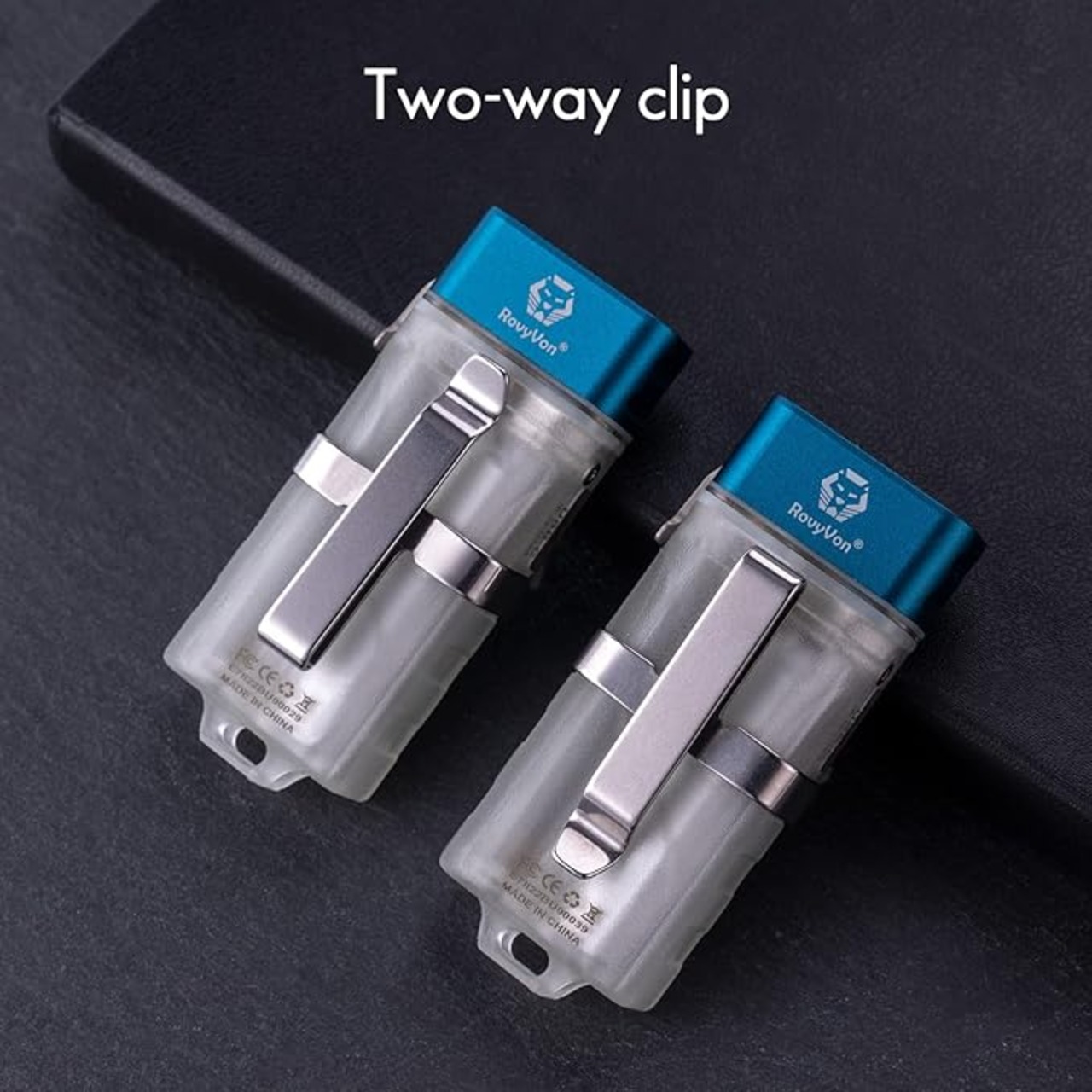 デュアル 6500K クールホワイト LED: RovyVon E7 懐中電灯には、前面に 2 つの 6500K クールホワイト LED が装備されており、最大 700 ルーメン、最大ビーム距離 70m/220 フィートを提供でき、日常生活やアウトドア活動に非常に明るいです
