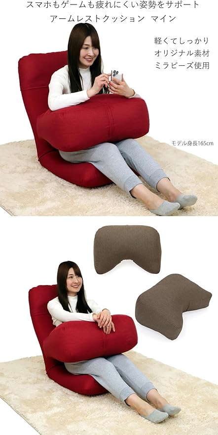 [座椅子専科] ビーズクッション ミラビーズ スマホ&ゲーム アームレストクッション マイン2 (レッド) 日本製 腕置き アームレスト 姿勢をサポート