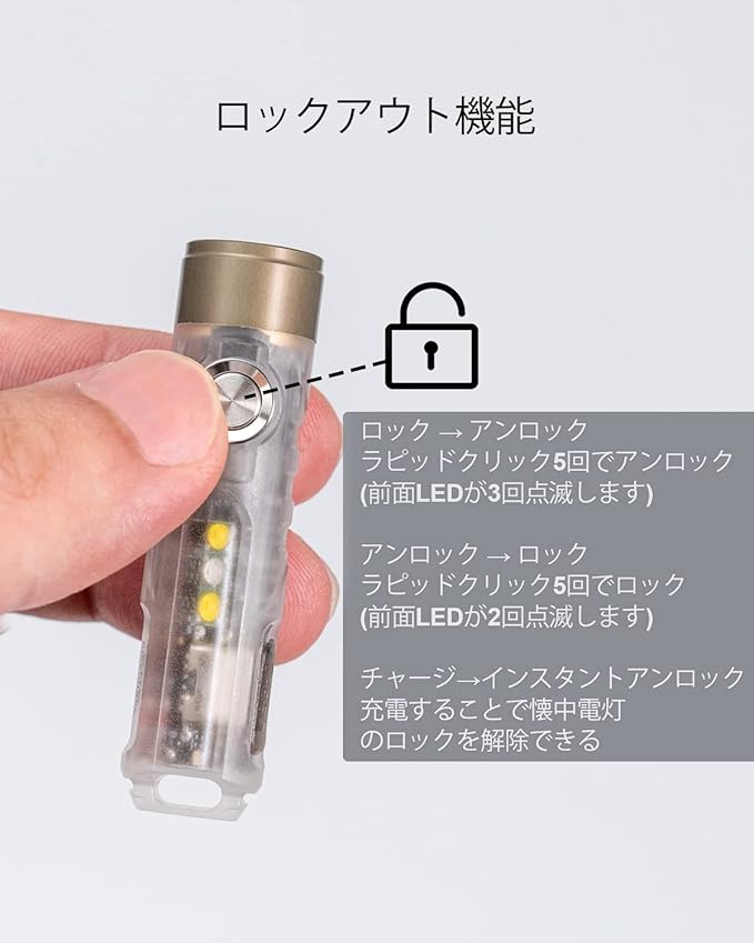 ニューアップグレード: 新しいUSB-Cポート、新しいUSBカバー、新しいロックモード、新しいマグネットポケットクリップ、新しいマグネットテールベース、すべては最高のEDCライトのためです。(最初の使用前に充電または5クリックで懐中電灯のロックを解除してください)。