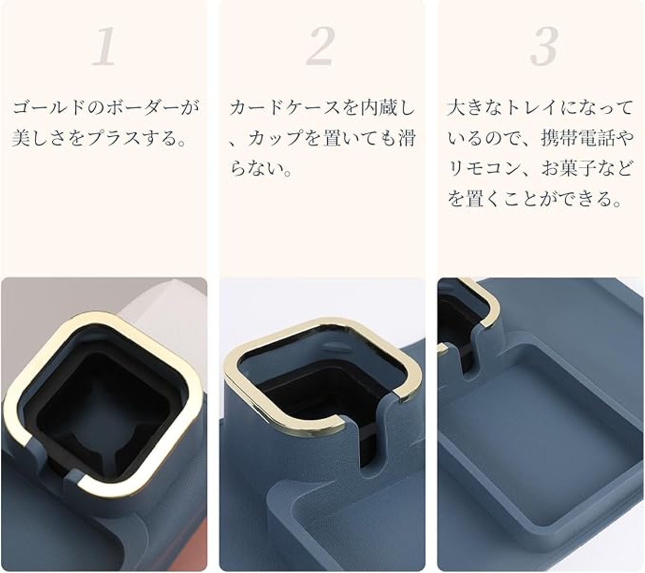 コーヒーテーブルがなくても、特徴的なデザインで珈琲、紅茶カップ、お茶 湯のみ、ビール瓶、グラス、コップとどんな ホット、コールド ドリンクも保持できる。