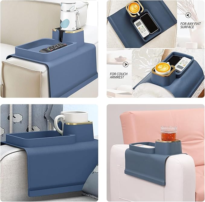 ドリンクホルダー ソファー肘掛用 ソファアームレストトレイ カウチコースター カップホルダー リモコンラック 携帯電話 メガネ 小物 整理 収納 シリコーン (ブルー)