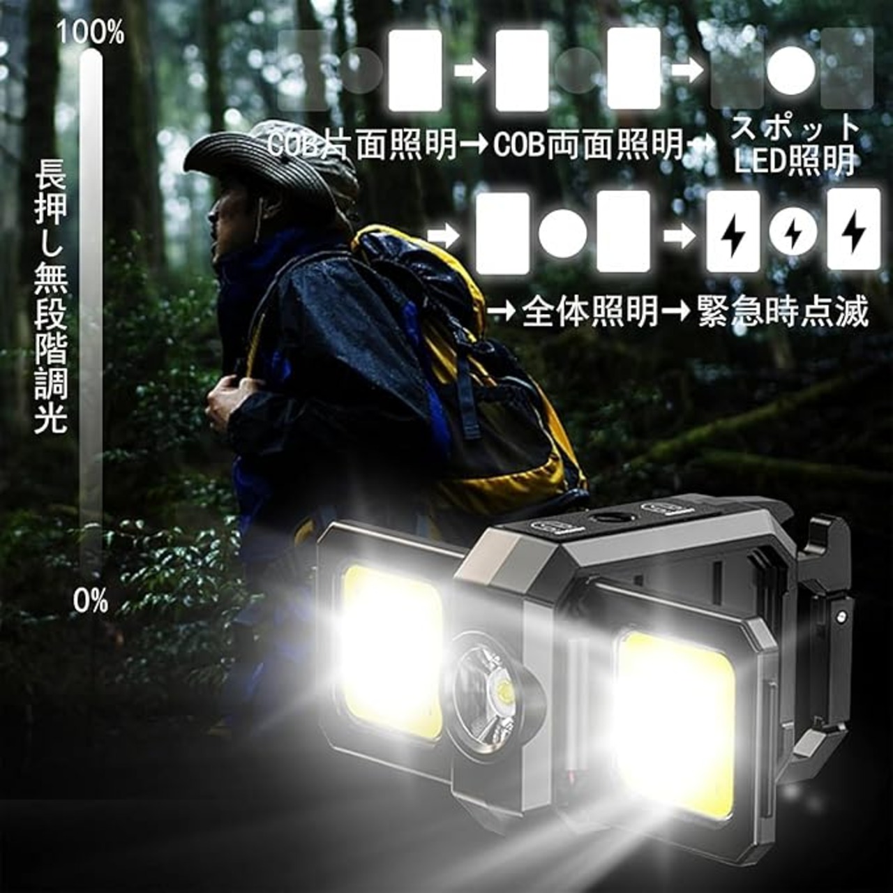 【cobライト5種類照明モード・無段階調光】■5つの点灯モードを備えたCOBキャンプ ライト:1回押し(片面照明)、2回押し(双面照明)、3回押し(ボトムトーチ照明)、4回押し(全体照明)、5回押し(緊急時点滅)。※同じモードで10秒以上滞在し、もう一度電源ボタンを押すと直接ライトを消します。■長押しで無段階調光(最大1000ルーメン)、ワンボタン操作の小型LEDランタン、片手でも素早く調整可能。