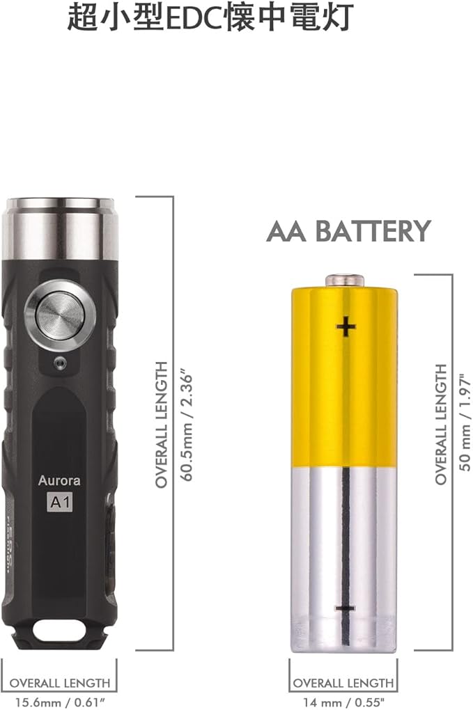RovyVon Aurora A1-G4 EDC キーチェーン懐中電灯の高ルーメン、USB-C 充電式、650ルーメン、6500Kミニキーリングトーチ ポケットサイズ (黒)