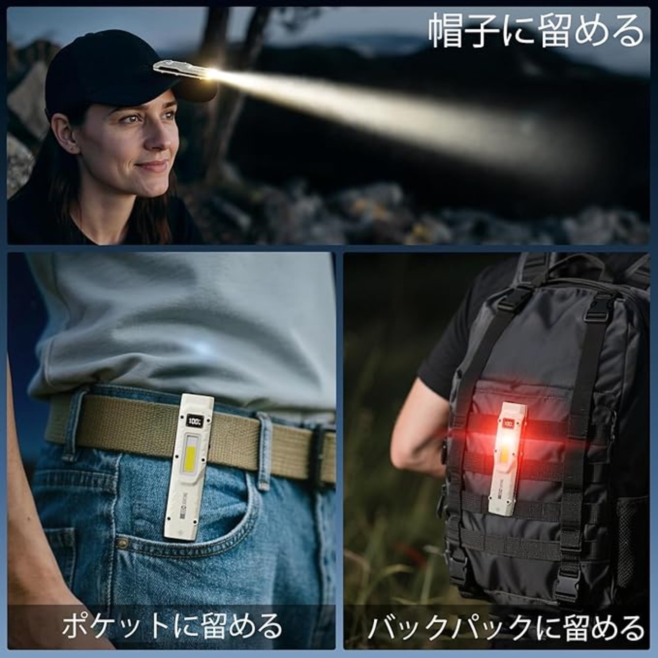 EDC 懐中電灯 強力【2025新規・超高輝度】小型 ledライト 軍用 最強 13モード調光 デジタル残量表示 多機能 COB作業灯 白・黄色光源 Type-C充電式 IPX6防水 帽かけ式懐中電灯 散歩 登山 探検 点検 警備 巡視 作業用 地震 停電 緊急時 災害グッズ