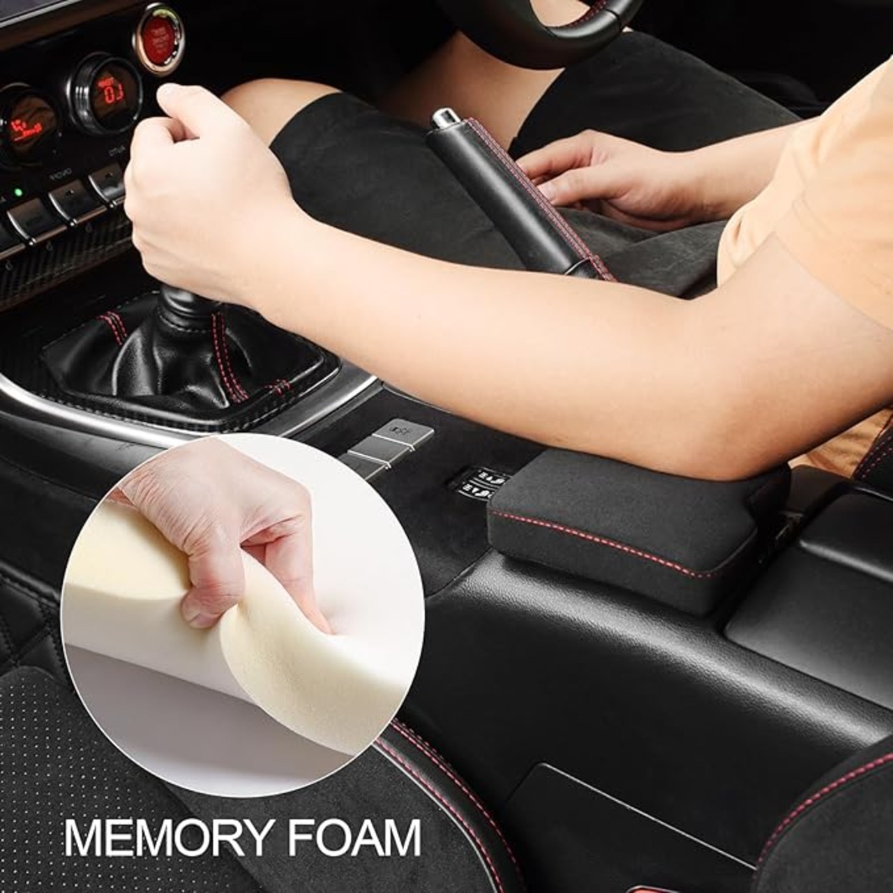 KUNGKIC MT トヨタ GR86 ZN8 スバル BRZ ZD8 2021 2022 2023 2024 2025 専用 肘掛け 肘置き サポーター アームレスト ひじ掛け 耐久性 疲れ解消 スエード調 アクセサリー 右運転向け 車用品 赤線