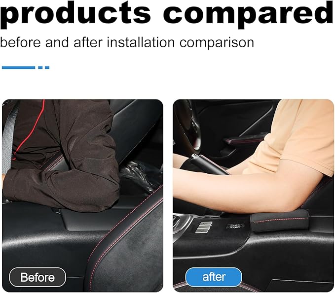 【取付方法】:車のセントラルコントロールに設置されている肘掛けに置くだけなので簡単に取り付け、脱着が可能です。底の部分に両面テープが付いておりますのでしっかり設置できます!
