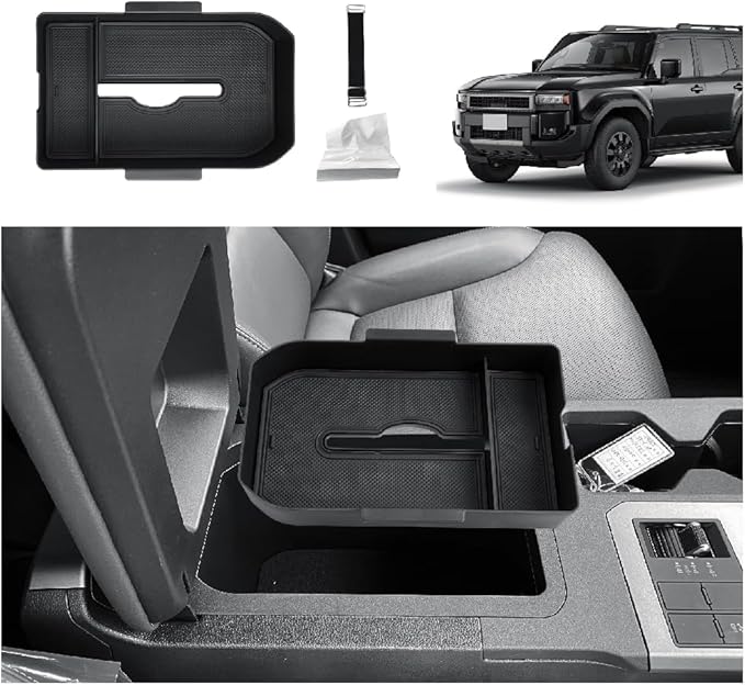 ECOZEN 新型 トヨタ ランクル250 専用 アームレストコンソールトレイ ランドクルーザー250 センターコンソール ティッシュケース 小物収納ボックス 車内収納 仕切り ボックス トレイ 小物入れ ボックス ABS素材 汚れ防止 滑り止め トヨタランクル250 アクセサリー 内装パーツ