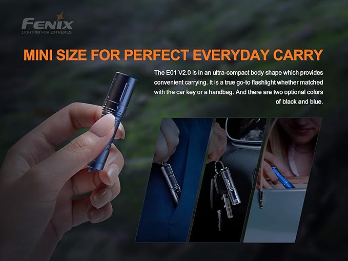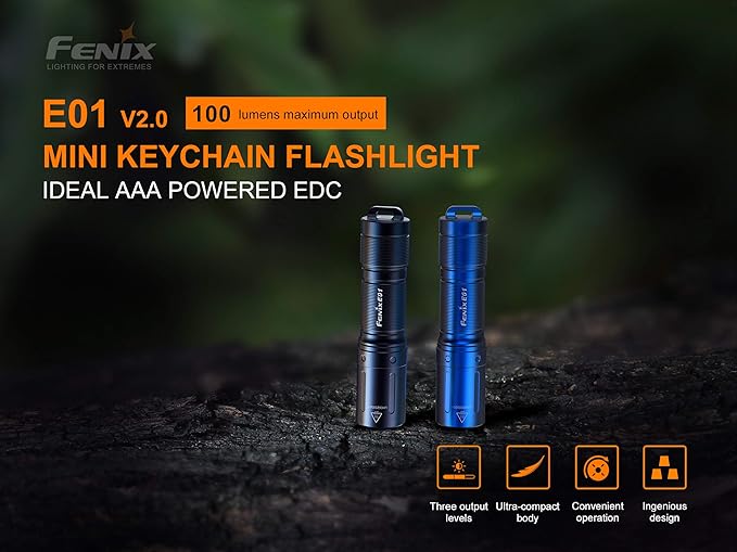 Fenix E01 V2.0 キーチェーンライト 最大100ルーメン 単3電池駆動 ポリカーボネート製 IP68防水 超軽量 小型 (ブルー)