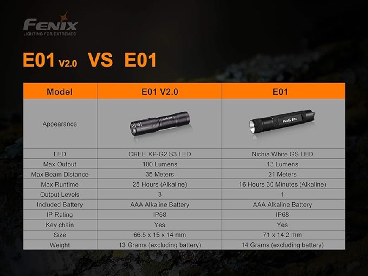 Fenix E01 V2.0 AAAフラッシュライトは、付属の単4電池1本で最大100ルーメンの明るさを放ちます。