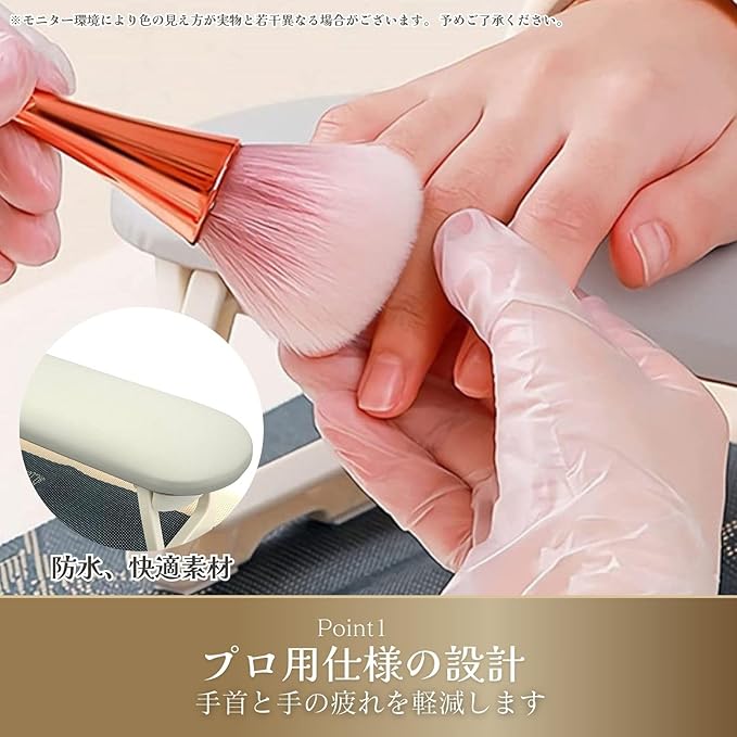 【プロ仕様のネイルハンドピロー】 ネイルアームレストは、最適な高さで設計され、ネイルアートを快適に楽しめるよう配慮されています。手首や手の負担を和らげることで、長時間の作業でも疲れにくくなっています。さらに、防水加工が施されており、湿らせた布でサッと拭くだけで清潔を保つことが可能です。