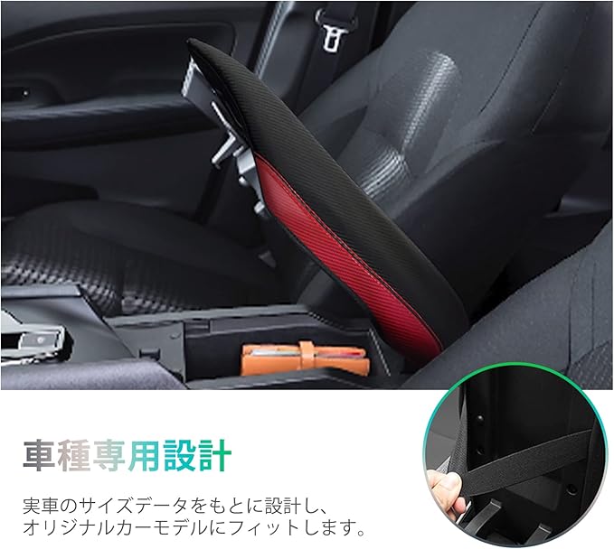 【車種専用・取付簡単】車種専用の設計を採用し、実車の寸法データをもとに設計・製作を行い、元のアームレストとぴったりフィットするようにしています。取付けが簡単で手間がかからず、保護カバーの裏側にはゴムバンドがついており、アームレストを立てた状態で上から被せていいです。