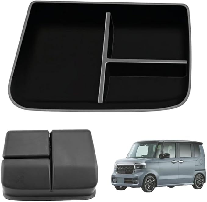 適合 for Honda N-BOX(JF5/6型)専用のコンソールトレイは、車内の収納効率を最適化する実用的なアクセサリーです。アームレストの下に設置できる3つの収納スペースを備えたトレイで、小物の整理整頓に便利です。ブラックカラーで統一された洗練されたデザインは、車内のインテリアと美しく調和します。耐久性のあるABS素材を使用し、日常的な使用に耐える設計となっています。取り付けは簡単で、アームレストを開けて設置するだけです。運転席からも手の届きやすい位置に配置され、スマートフォン、サングラス、小銭など、よく使う小物をすっきりと収納できます。サイズは車種に合わせて設計されており、ぴったりとフィットします。