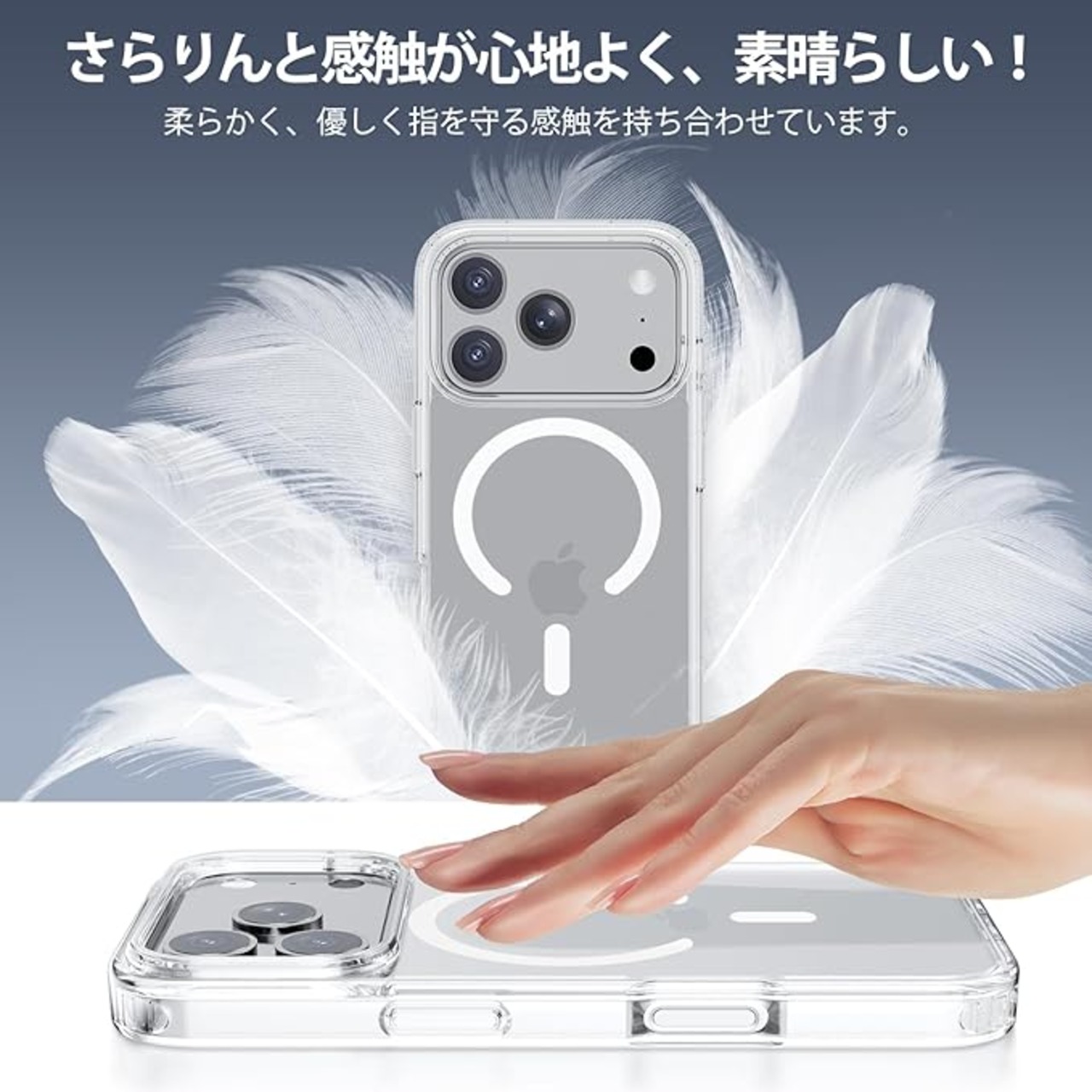 【極めて透明・薄く、耐衝撃性】WHTMM iPhone 17 Pro 用 ケース クリア TPU+PC 透明 MagSafe対応 耐衝撃 滑り止め 指紋防止 米軍MIL規格 黄変防止 スマホケースiPhone 17 Pro 対応