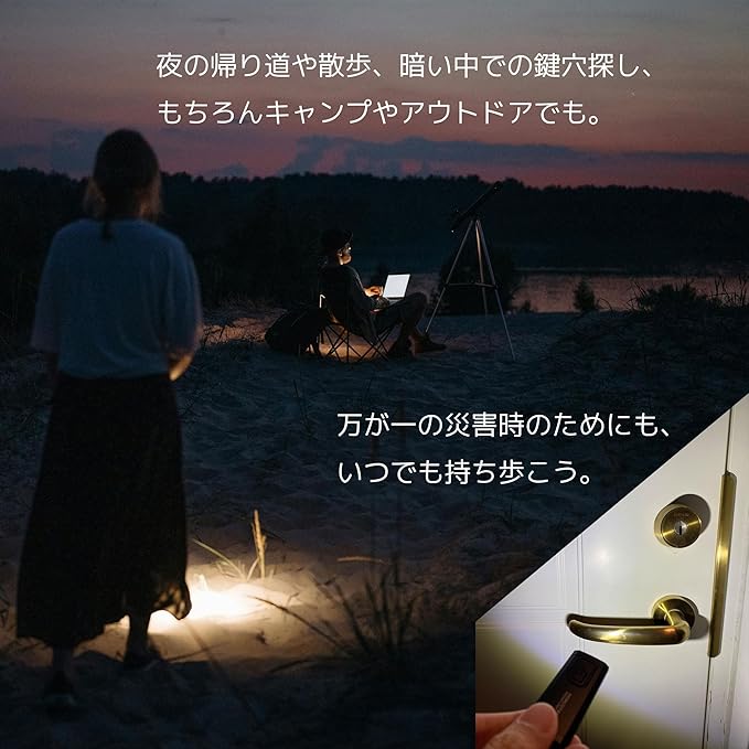 【 55 25 9mmの極小サイズ 】ライターよりも小さい。常に身につけて持ち歩ける、キーホルダーサイズのハイパワーLEDライト。