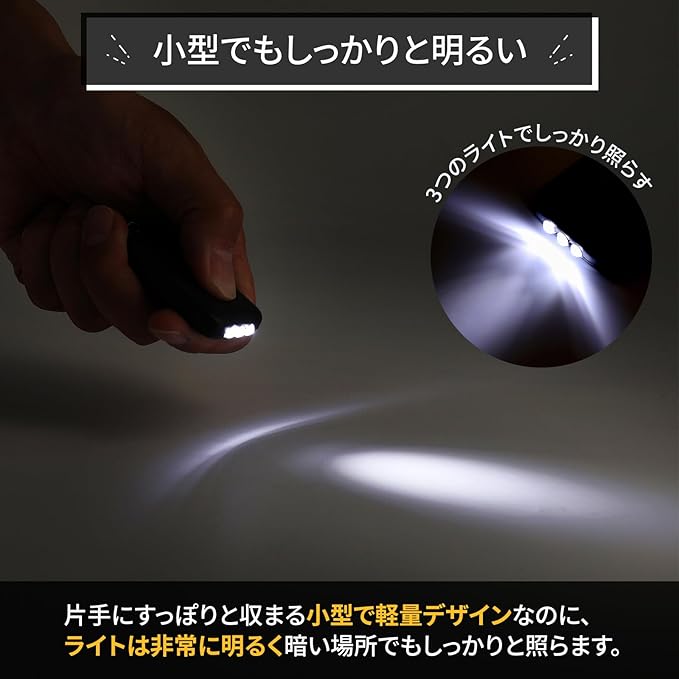 暗い場所での探し物や確認にさっと使えて、明るく照らします。