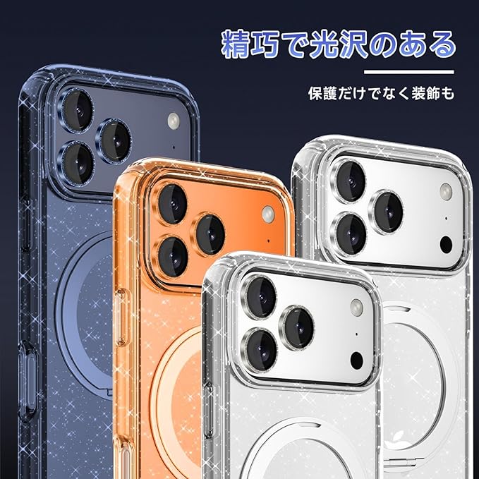 For iPhone 17 Pro/17 Pro Max 用 レンズ保護キャップ アルミ合金製 カメラカバー キラキラ 9H強化保護カバー ブラックフレーム アルミニウム合金素材 高光透過率 露出オーバー防止 耐衝撃 傷防止 指紋防止 写真撮影に影響しない 超薄型 アイフォン 17 Pro/17 Pro Max に対応 (オレンジ)