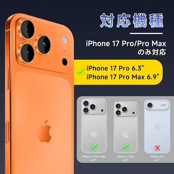 【対応機種】このカメラプロテクターは アイフォン 17 Pro/17 Pro Max に対応(For iPhone 17 Pro/17 Pro Max)(2025年9月発売モデル)カメラレンズカバーです。(ご注意:ご購入前にお使いの機種をご確認ください。)