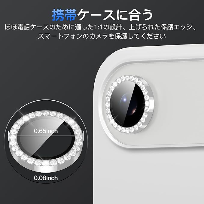 製品の特徴:For iPhone Airカメラレンズ保護カバー。ベゼルに光を屈折させるダイヤモンドをあしらい、光のある環境でキラキラと輝きます。レンズ部には9H強化ガラス膜を採用し、エッジのブラックコーティングにより雑光や派手な光がレンズに入るのを防ぎ、露出を抑えています