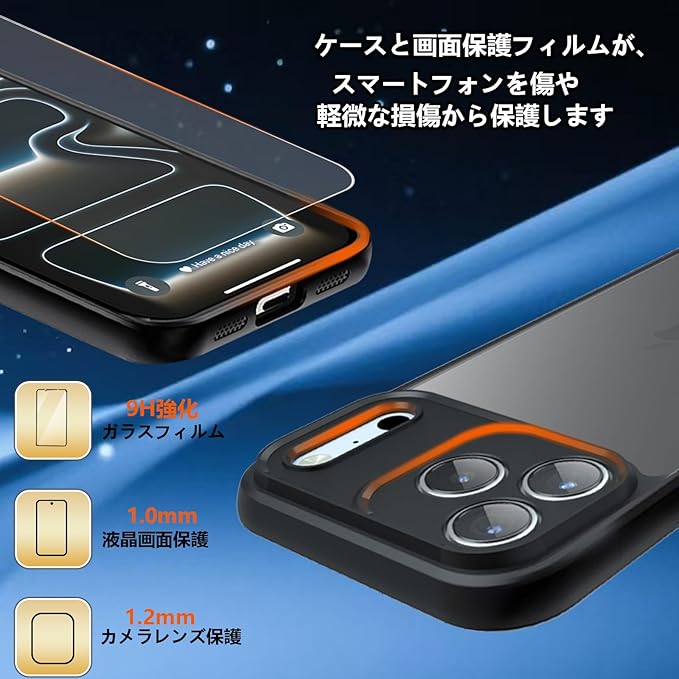 【ガラスフィルム付き】アイフォン 17 pro 対応機種にセットされた9H硬度、99.9%の透明度のガラスフィルムが付き、強化ガラス製のフィルムは、キズや衝撃からスマホ画面を守り、気泡や傷もつきにくいです