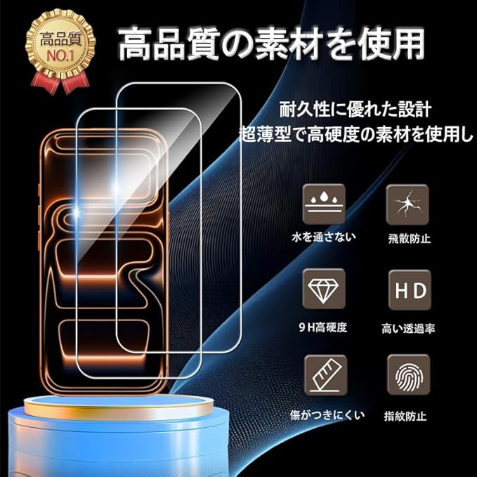高品質素材: 9H硬度の強化ガラスを採用し、日常的な傷や衝撃から画面を効果的に保護。耐久性に優れた設計