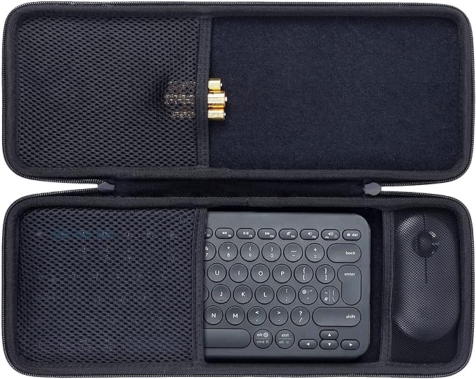 この保護ケースは、ワイヤレスキーボードとマウスのコンボに最適で、小さなキーボードに対応できるスペースが広くなっています。 このポータブルキーボードとMacマウスケースは、ワイヤレスキーボード K380 美的キーボードとM355ワイヤレスBluetoothマウスコンボ専用です。