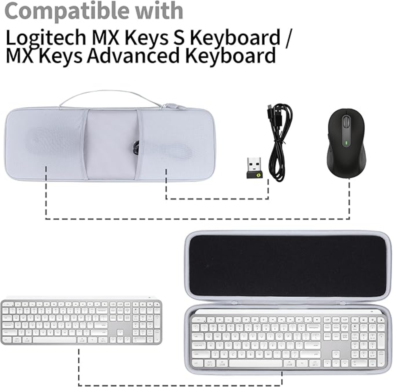 Peyyargo収納ケースと互換性のあるロジクール Logicool MX KEYS S ワイヤレス キーボード (ホワイト ケースのみ)