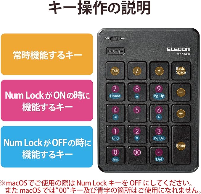 Excelでの作業に便利な[Tab]キーと、数字の入力に便利な[00]キーを搭載しています。
